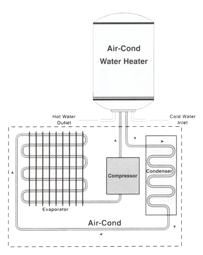Air Conditioner Water Heater operates with air conditioners of any size or